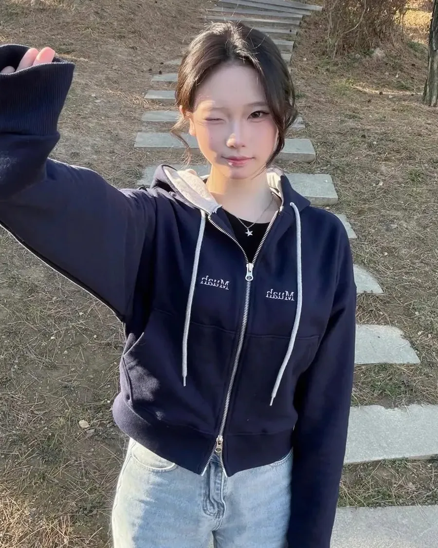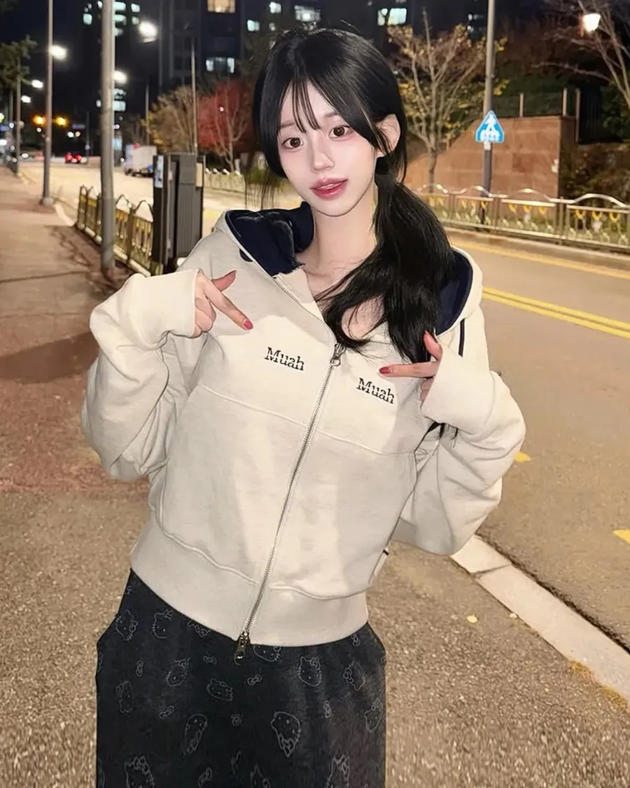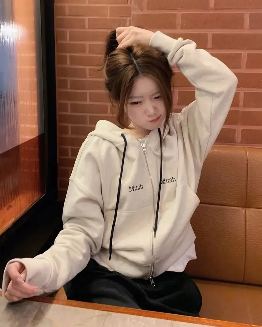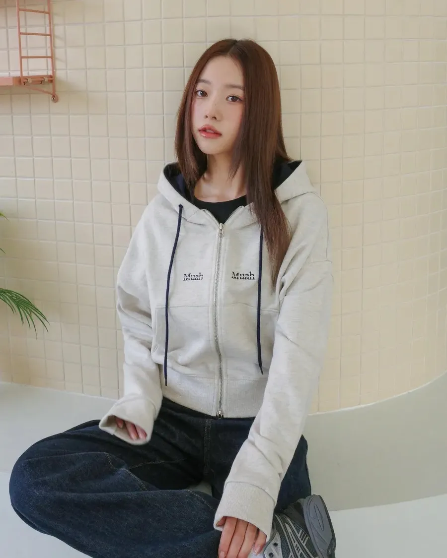 預購|Muah Muah 拼接連帽拉鍊衫-4色