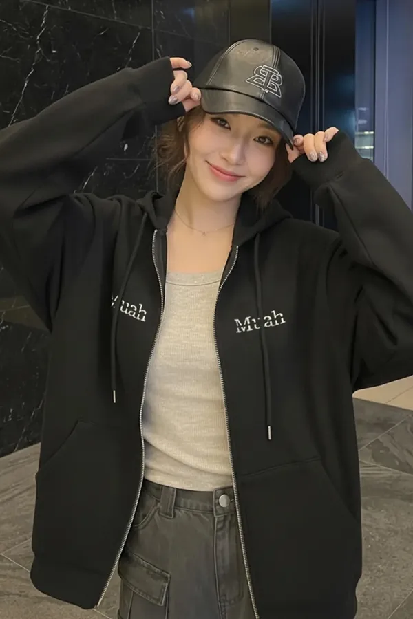 預購|Muah Muah 拼接連帽拉鍊衫-4色