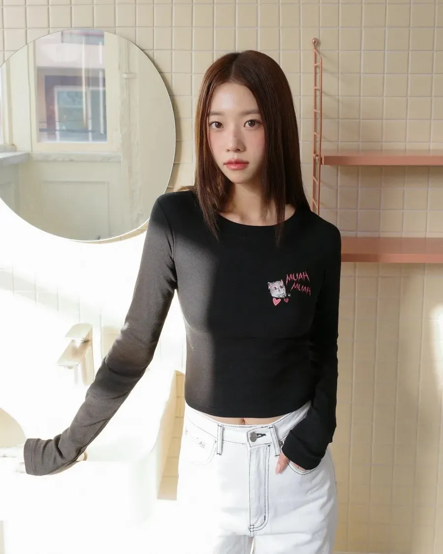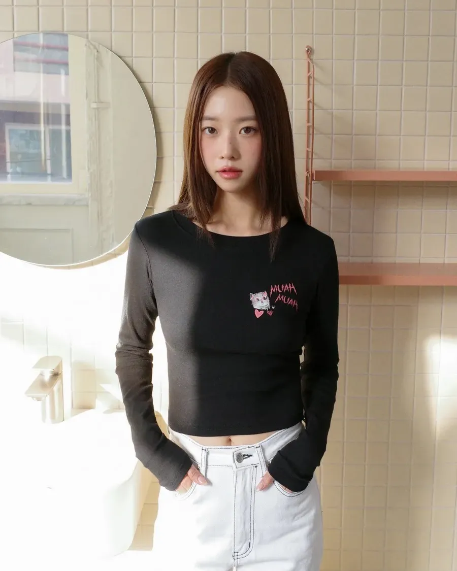 預購|Muah Muah 可愛貓咪長袖短版上衣-2色